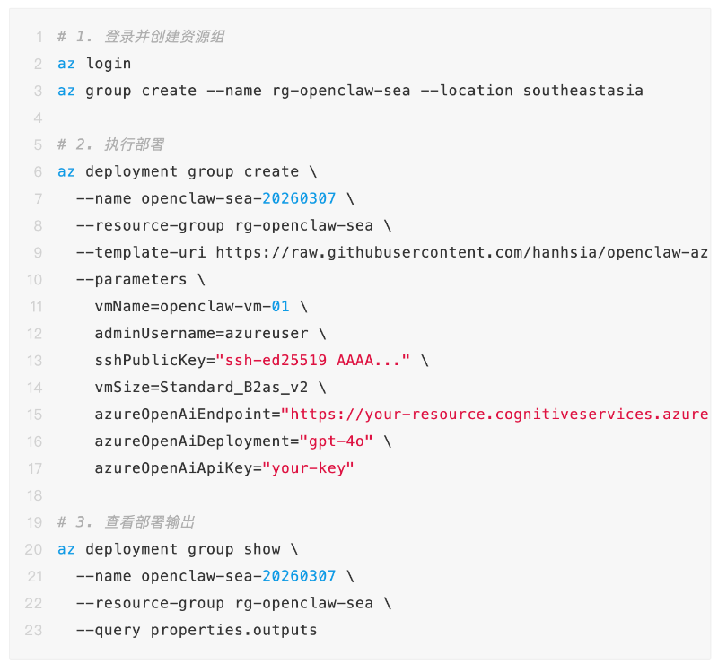 基于 Azure 虚拟机的 OpenClaw 自动化部署方案,核心就是把复杂的环境初始化、依赖配置、安全管控全部隐藏在模板之后,让你跳过所有繁琐的前置工作,直接从 “服务已经可用” 开始,专注于 OpenClaw 本身的能力落地与业务价值挖掘。